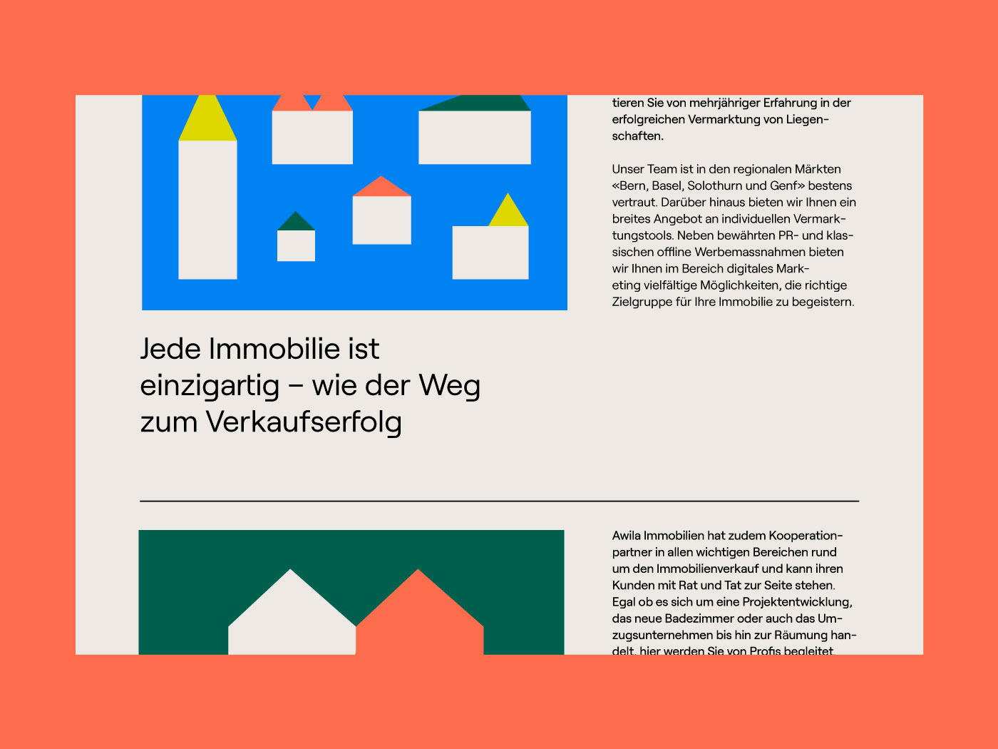 Für das äusserst sympathische Team von Awila Immobilien durften wir das Redesign ihrer Website umsetzen. Unser gemeinsamer Anspruch war es, einen Look zu schaffen, der sich bewusst von anderen Präsenzen in der Branche abhebt. Kernkompetenzen, Leitsätze und Tipps wurden grafisch untermalt. Der grosszügige Umgang mit Bildelementen und Typografie lädt zum Verweilen ein. Wir freuen uns sehr auf die weitere Zusammenarbeit mit Awila!