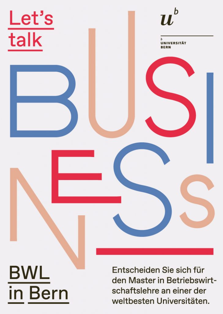 Für das Departement BWL der Universität Bern durften wir in Zusammenarbeit mit unserer Text-Partnerin Textindianer den Faltflyer für die Bachelor- und Masterstudiengänge neu und zielgruppengerecht gestalten.