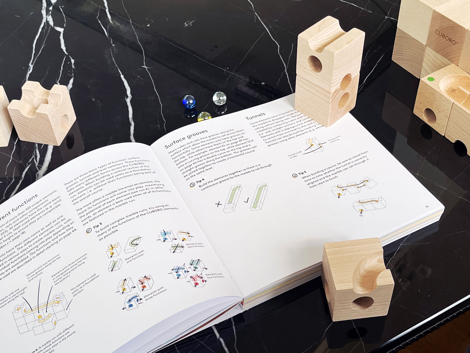Mit den cleveren Tipps und Tricks im neuen CUBORO Buch entdecken kleine und grosse Spielerinnen und Spieler, was sich mit den vielseitigen CUBORO Elementen alles konstruieren lässt. Spannende Baupläne für Kugelbahnen sowie knifflige Quiz-Aufgaben und Wettbewerbe für die CUBORO Sets sorgen für Inspiration und Herausforderung. Ausserdem gibt es umfassende Hintergrundinformationen zur Geschichte und Herstellung von CUBORO.