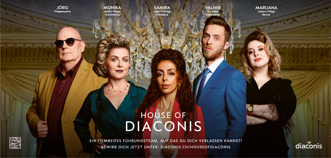 The look and the name of the campaign are inspired by the film adaptation of the Gucci empire by Ridley Scott (starring Lady Gaga). We quickly turned the "House of Gucci" into the "House of Diaconis" and put real employees in the movie star roles.