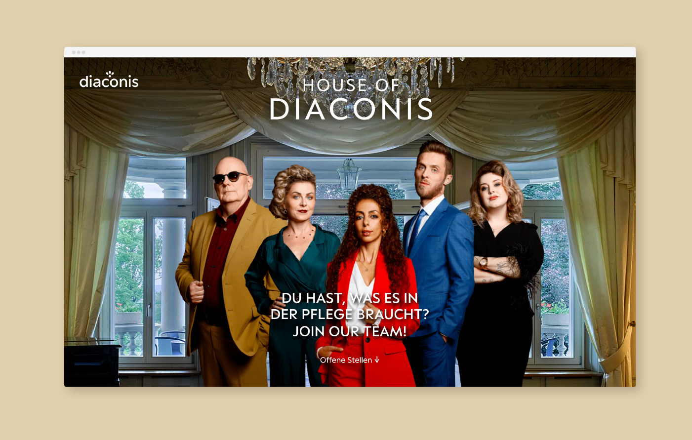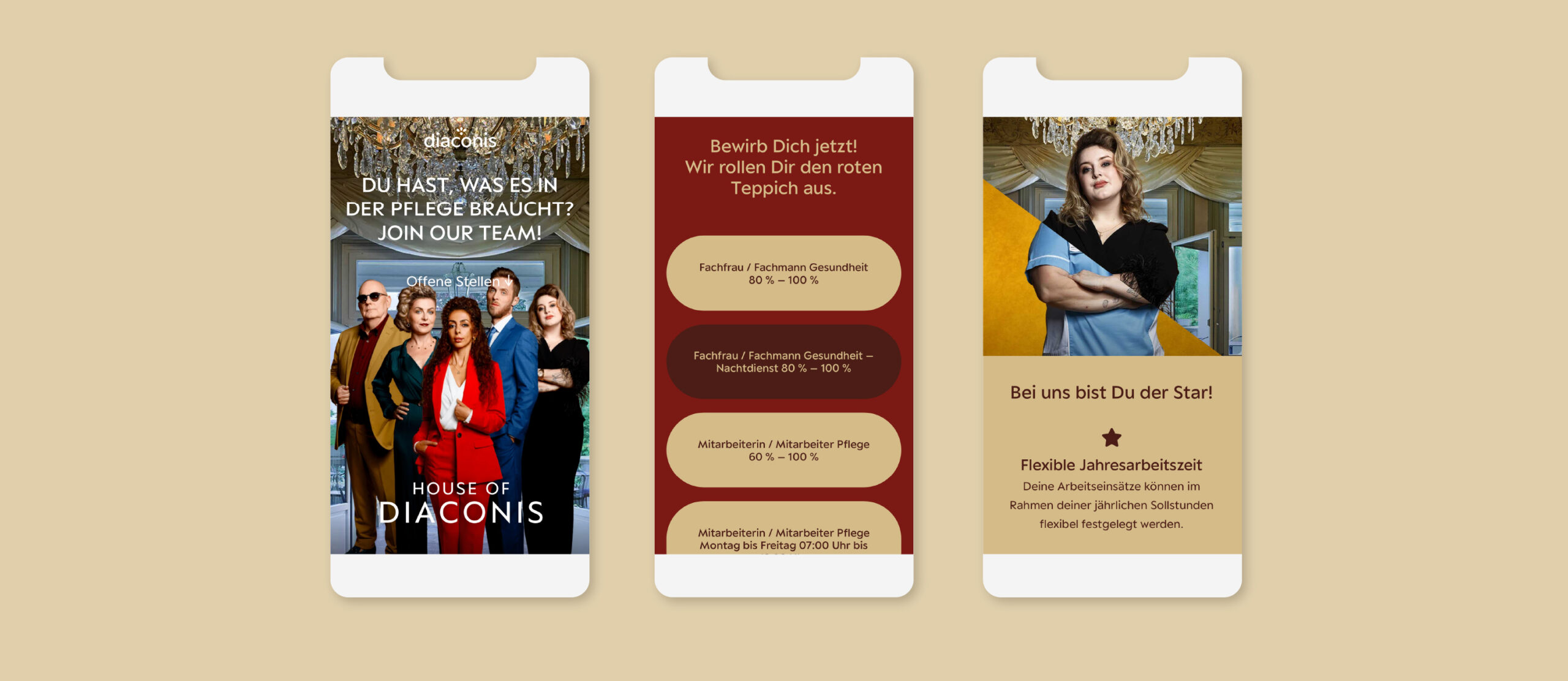 In collaboration with the Diaconis Foundation, we have developed a cinema-inspired campaign to draw attention to job vacancies in the care sector.