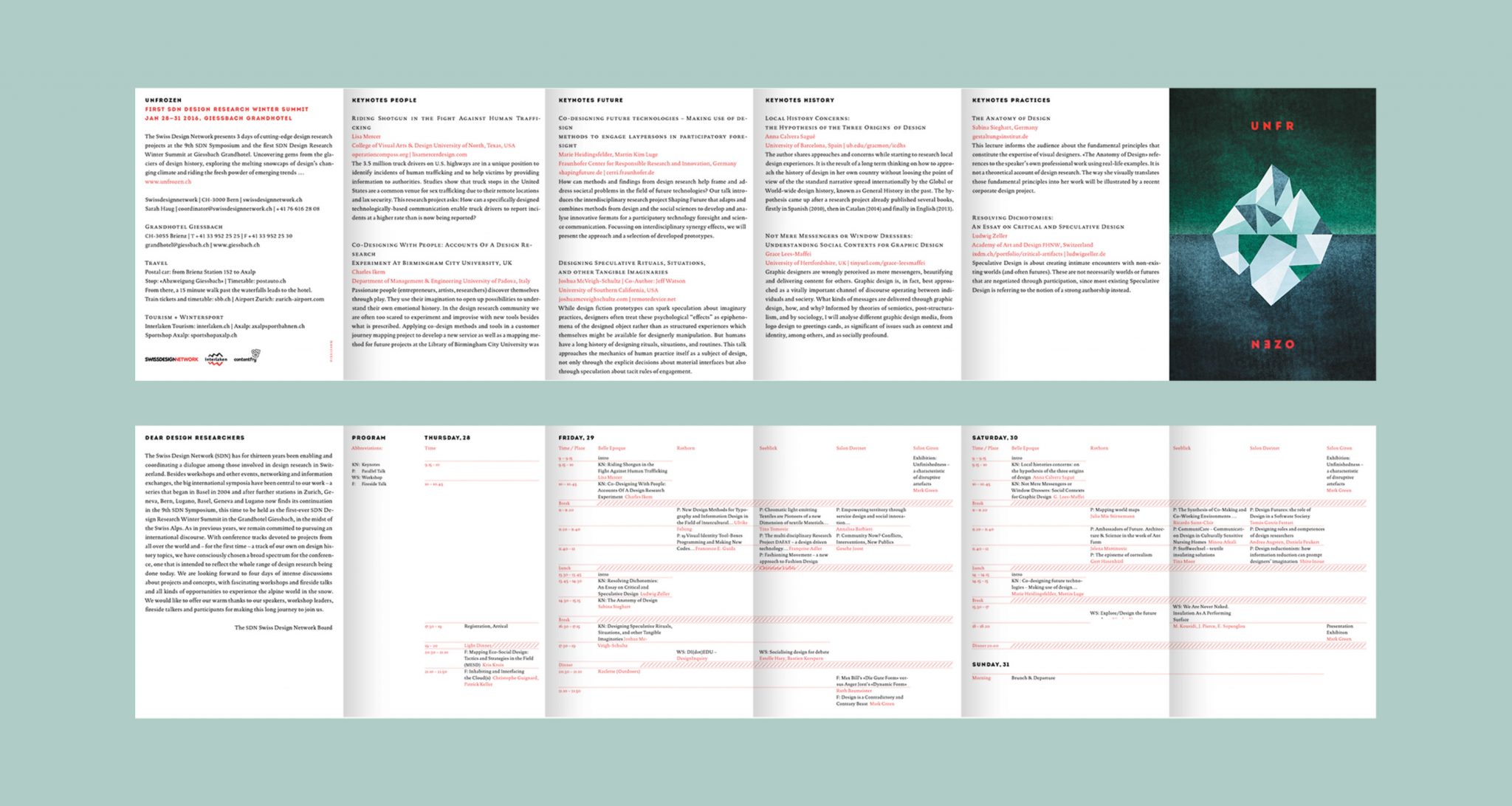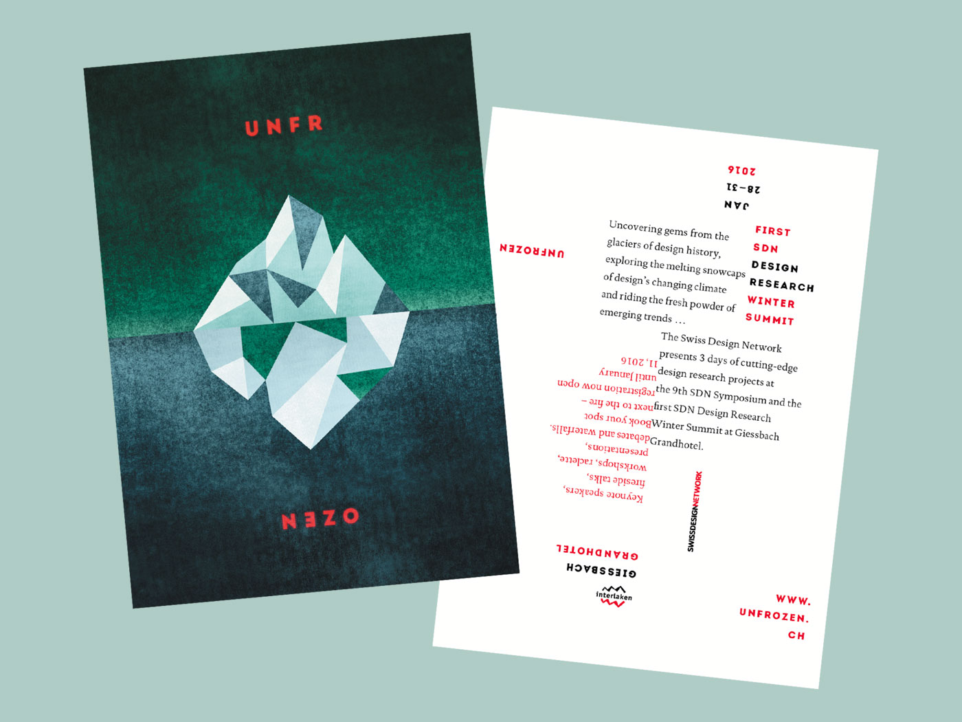 "Unfrozen" is the programme and should stand for the thawing of the Swiss Design Network, which is awakening from inactivity with this first event in a long time. We have tried to visualise the ambivalence of thawing, which the title already contains with the allusion to climate change as an iceberg, where you can't tell exactly which part is in the water and which is exposed to the sun.