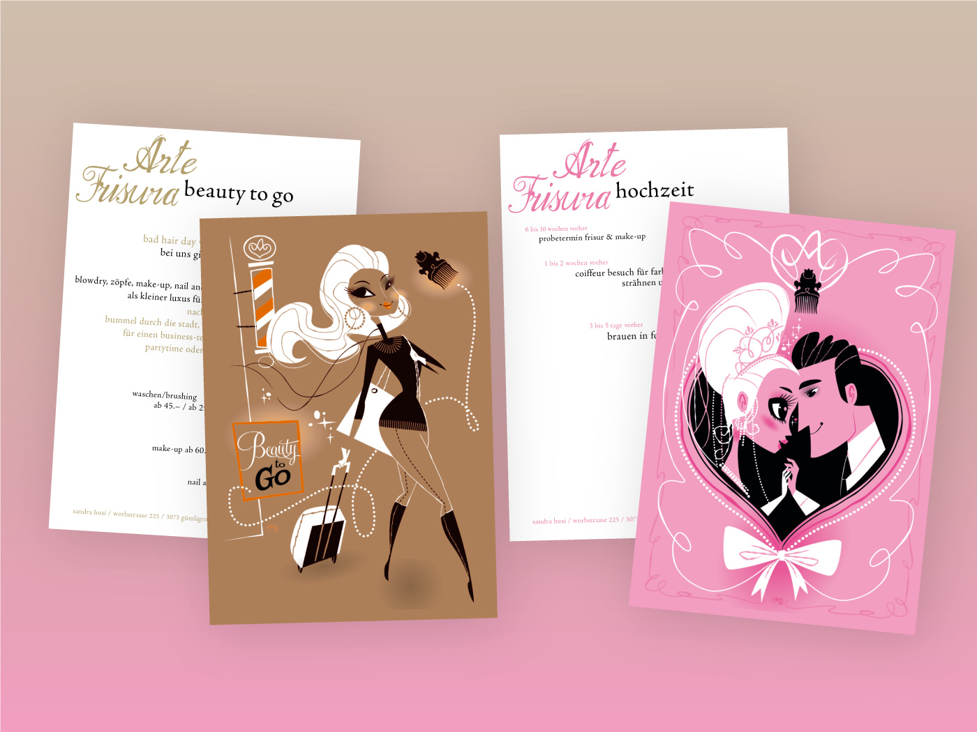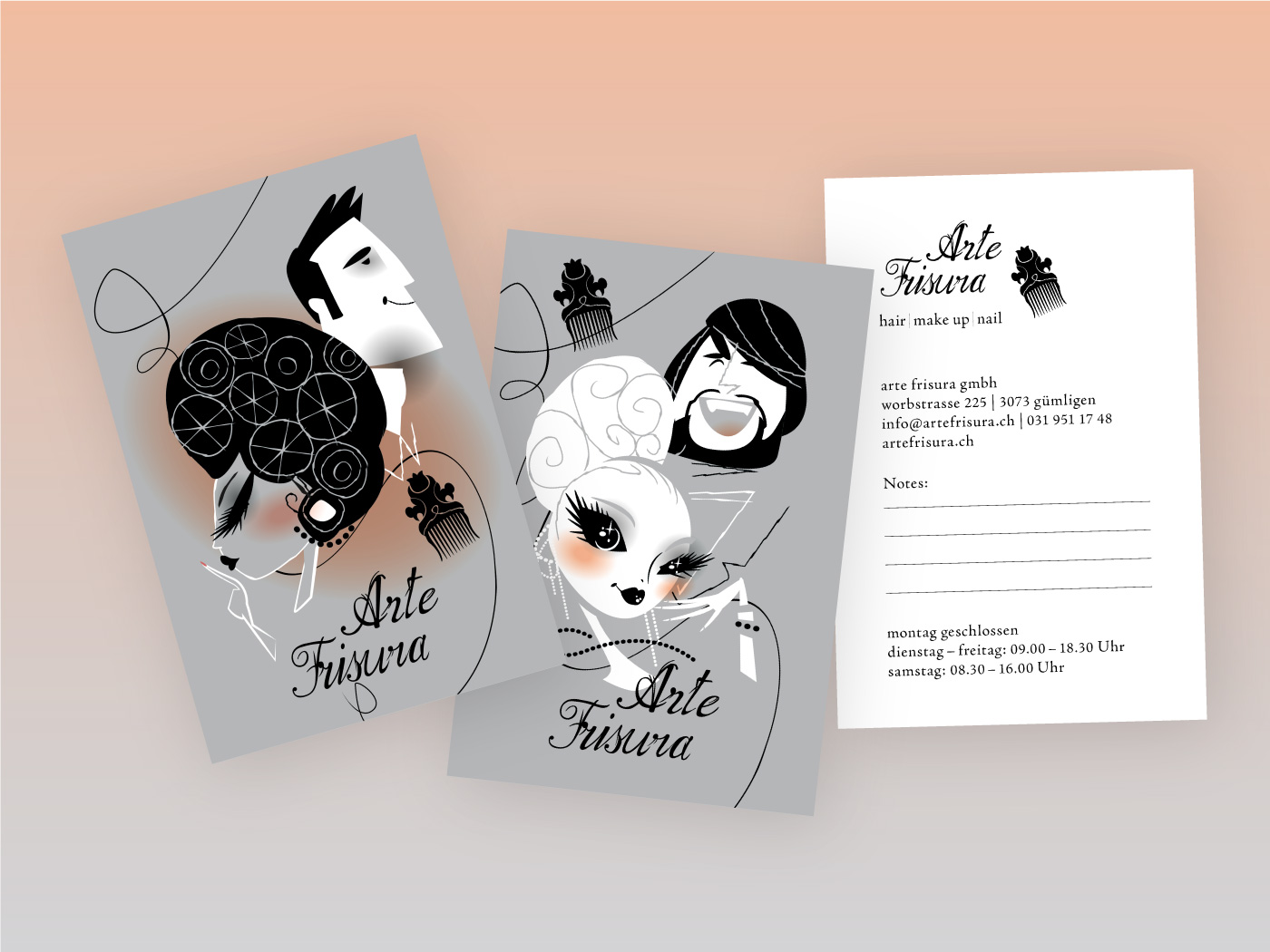 Pour Arte Frisura, un salon de coiffure extrêmement sympathique à Gümligen et Stettlen, nous avons réalisé un Corporate Design passionnant. Le site Web, les cartes de visite, les flyers et de nombreux autres supports de communication ont été visualisés sur la base du concept de création.
