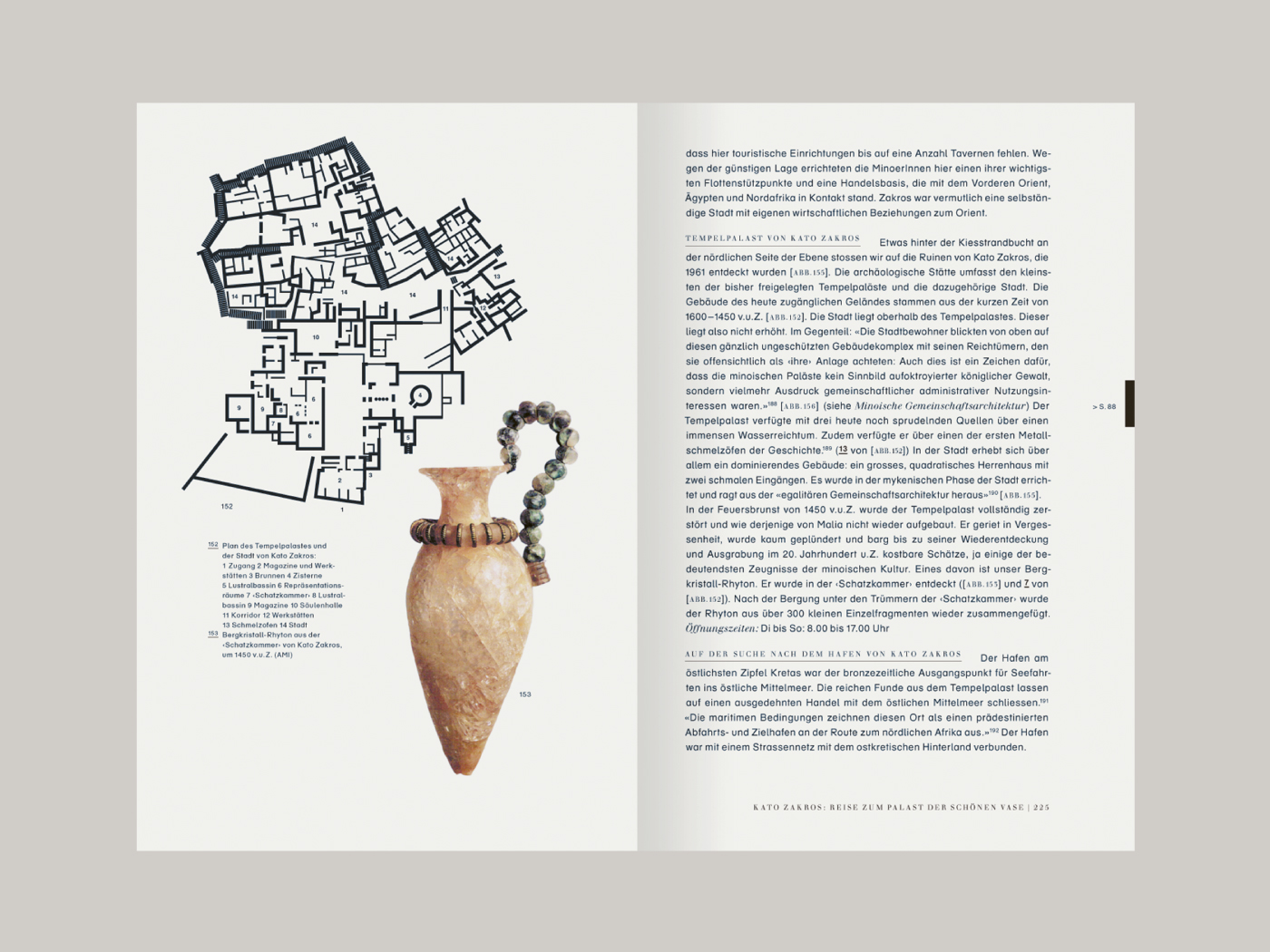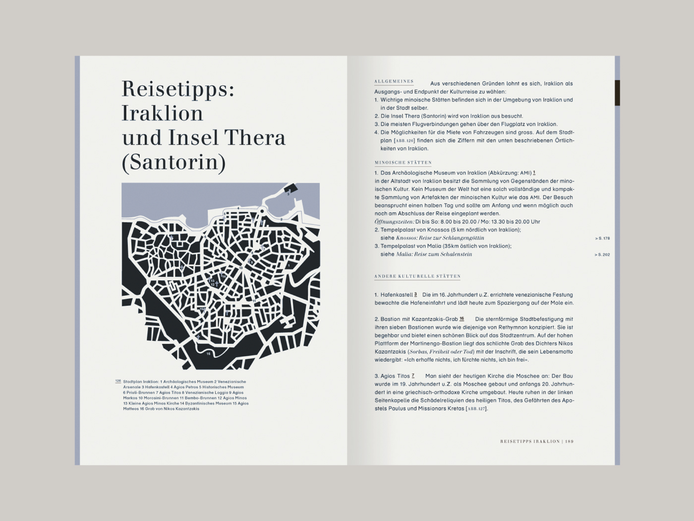 Beat Schneider a écrit un livre passionnant sur la civilisation minoenne en Crète, qui fait également office de guide de voyage. Le matériel iconographique doit être bien tissé avec le texte, les renvois demandent une navigation claire, la partie culturelle et la partie voyage doivent être visiblement séparées tout en fonctionnant ensemble - et enfin, on doit avoir envie de le lire. Il en résulte un beau livre que l'on peut trouver dans tous les magasins spécialisés.